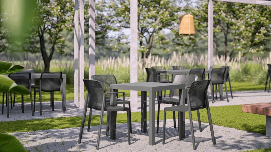 Produzida em polipropileno, resistente à umidade e variações de temperatura, a cadeira Solari é ideal para áreas externas. Seu assento moldado ao corpo oferece elegância e conforto. Além de fácil limpeza e manutenção, a cadeira Capri é empilhável, facilitando o armazenamento.